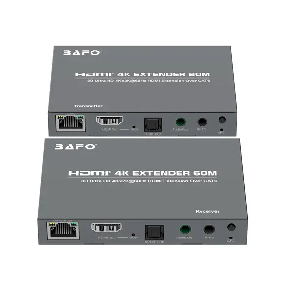 اکستندر HDMI بافو مدل BF372Q به شما آزادی عمل کاملی در مدیریت صدا میبخشد. با قابلیت جداسازی صدا، دیگر به بلندگوهای داخلی نمایشگر محدود نیستید. خروجیهای مستقل SPDIF (دیجیتال) و Audio (آنالوگ) روی فرستنده و گیرنده، این امکان را فراهم میکنند که صدای باکیفیت را مستقیماً به سیستمهای صوتی حرفهای، آمپلیفایرها یا یک اسپیکرفون کنفرانسی باکیفیت هدایت کنید. این ویژگی برای ارتقاء کیفیت صوت در اتاقهای جلسات و دستیابی به صدای سینمایی و فراگیر، یک مزیت کلیدی است.