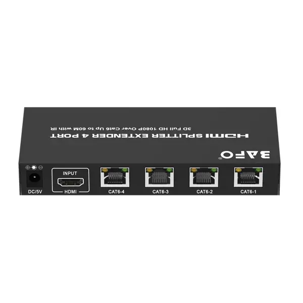 قلب تپنده اسپلیتر اکستندر 4 پورت HDMI بافو BF141، واحد مرکزی اسپلیتر آن است. این واحد ۱ عدد ورودی HDMI را دریافت کرده و آن را به ۴ عدد خروجی RJ45 مجزا تبدیل میکند. هر یک از این خروجیها میتوانند سیگنال را از طریق یک کابل شبکه Cat6 تا فاصله ۶۰ متر به یک واحد گیرنده ارسال کنند. این معماری هوشمند، نیاز به چندین دستگاه مجزا را از بین برده و یک راهکار مرکزی، منظم و بسیار کارآمد برای توزیع سیگنال در مقیاس بزرگ فراهم میآورد. این اکستندر تصویر با این قابلیت، توزیع سیگنال را ساده کرده است.