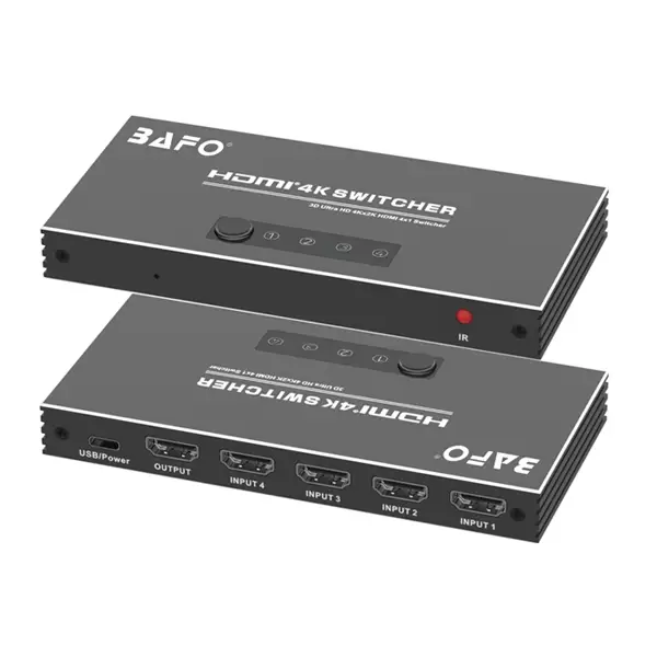 این دستگاه به شما امکان میدهد تا ۴ عدد پورت ورودی HDMI مجزا (مانند کنسول بازی، لپتاپ، رسیور و مدیا پلیر) را به صورت همزمان متصل کرده و تنها با یک کابل خروجی، سیگنال مورد نظر خود را به نمایشگر هدایت کنید. سوئیچ HDMI بافو BF173 کلید شما برای داشتن یک مرکز سرگرمی یا کاری منظم و کارآمد است.