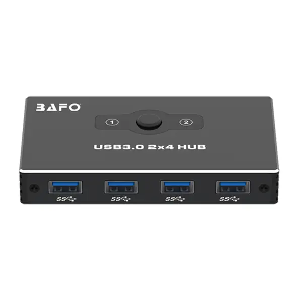 این دستگاه برای سادگی در استفاده طراحی شده است. هاب سوئیچ 4 پورت USB 3.0 بافو BF201 به صورت Plug and Play عمل کرده و نیازی به نصب هیچگونه درایور یا نرمافزار پیچیدهای ندارد. کافی است دو کامپیوتر خود را به ۲ عدد پورت ورودی USB و چهار دستگاه جانبی خود را به خروجیها متصل کنید. این دستگاه با تمام سیستمعاملهای رایج سازگار است. فرآیند جابجایی بین دو کامپیوتر به سرعت و بدون هیچگونه تداخل سیگنال انجام میشود. و به شما این امکان را میدهد که به طور آنی تصمیم بگیرید کدام سیستم کنترل دستگاهها را در دست داشته باشد.