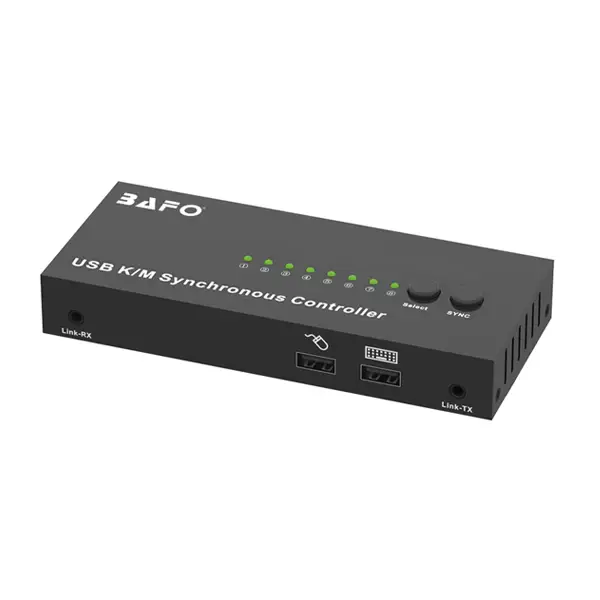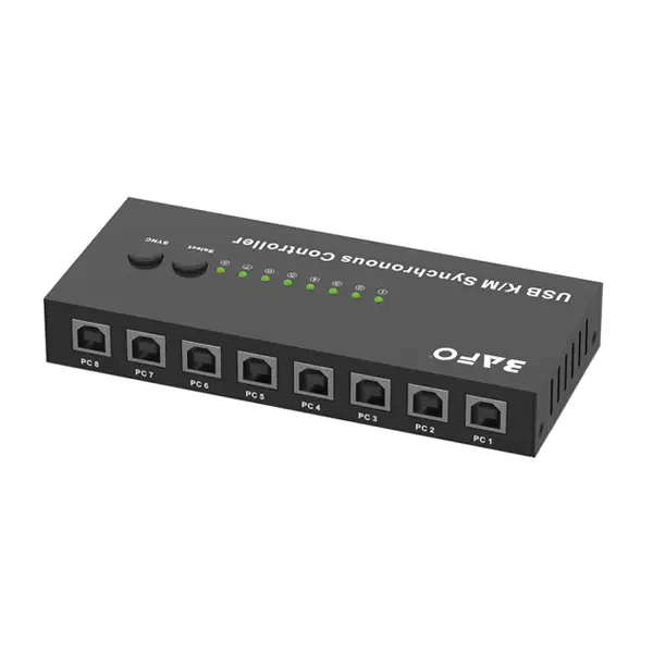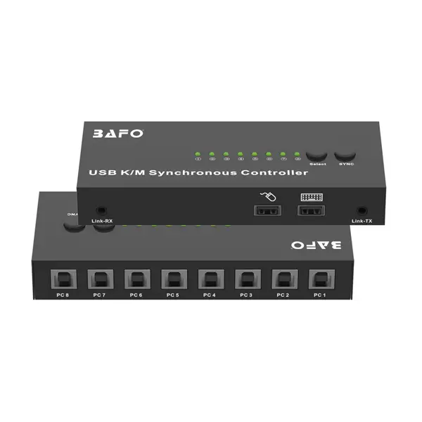 در مقیاس‌های بزرگ عملیاتی مانند مزارع سرور، آزمایشگاه‌های تست مقیاس‌پذیری، مراکز آموزش کامپیوتری بزرگ، یا کاربردهای بسیار تخصصی مانند کنترل همزمان چندین ماشین مجازی یا حساب‌های بازی آنلاین مدیریت دستی و جداگانه هر سیستم، نه تنها ناکارآمد، بلکه عملاً غیرممکن است. کنترلر همزمان 8 پورت USB بافو BF167 به عنوان یک “ارکستراتور سخت‌افزاری” پیشرفته، دقیقاً برای غلبه بر این چالش عظیم مهندسی شده است. این دستگاه یک راهکار انقلابی است که به شما امکان می‌دهد تا تنها با استفاده از یک کیبورد و یک ماوس، هشت کامپیوتر مجزا را به صورت کاملاً همزمان و آینه‌ای کنترل کنید، گویی که در حال کار با یک سیستم واحد با هشت رابط کاربری هستید.