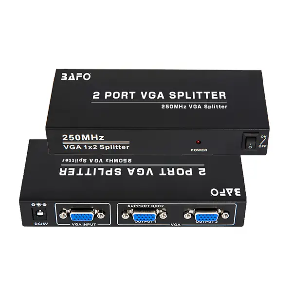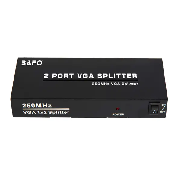 اسپلیتر 2 پورت VGA بافو BF155 از برند معتبر BAFO، انتخابی هوشمندانه برای هر کسی است که به دنبال یک راه‌حل قابل اتکا برای دوگانه‌سازی خروجی VGA بدون مصالحه بر سر کیفیت است. این دستگاه با ترکیب پهنای باند 250MHz، پشتیبانی از رزولوشن QHD، ساختار صنعتی فلزی و نصب آسان (Plug and Play)، ابزاری ایده‌آl برای محیط‌های آموزشی، اداری، کامپیوتری و چندرسانه‌ای است. این محصول با گارانتی ۲ سال (۲۴ ماه) و در بسته بندی جعبه رنگی شکیل عرضه می‌شود که نشان از کیفیت و اطمینان بالای آن دارد.